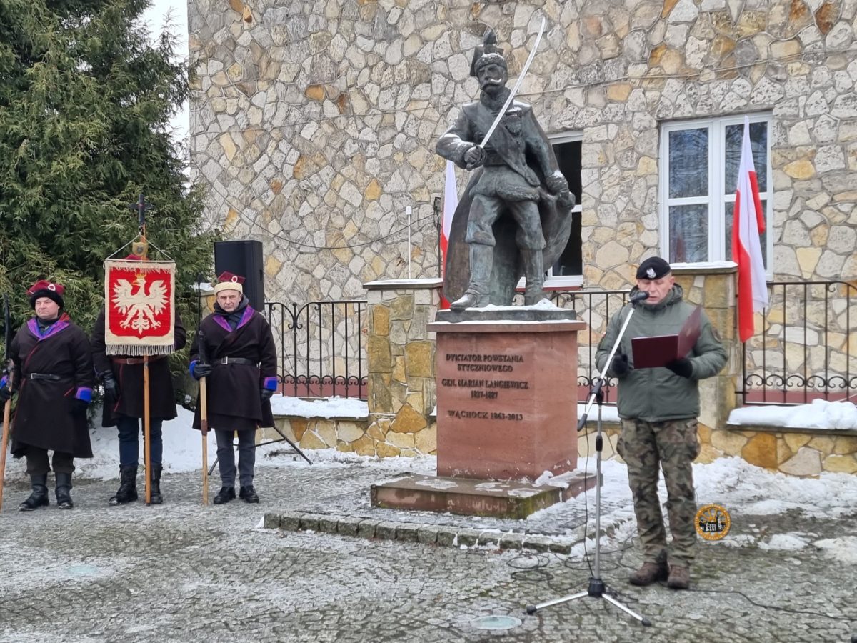 Kolejnym punktem programu były obchody przy pomniku Mariana Langiewicza. W tym miejscu uczczono pamięć bohaterów powstania styczniowego poprzez okolicznościowe przemówienia, wręczenie odznaczeń i medali. Wśród wyróżnionych znaleźli się między innymi Burmistrz Robert Janus oraz Dyrektor Miejsko Gminnego Ośrodka Kultury w Wąchocku, Marian Susfał. Złożono także kwiaty i wiązanki. Całość miała podniosły, godny charakter i była wyrazem szacunku dla historii oraz ludzi, którzy walczyli o niepodległość Ojczyzny.